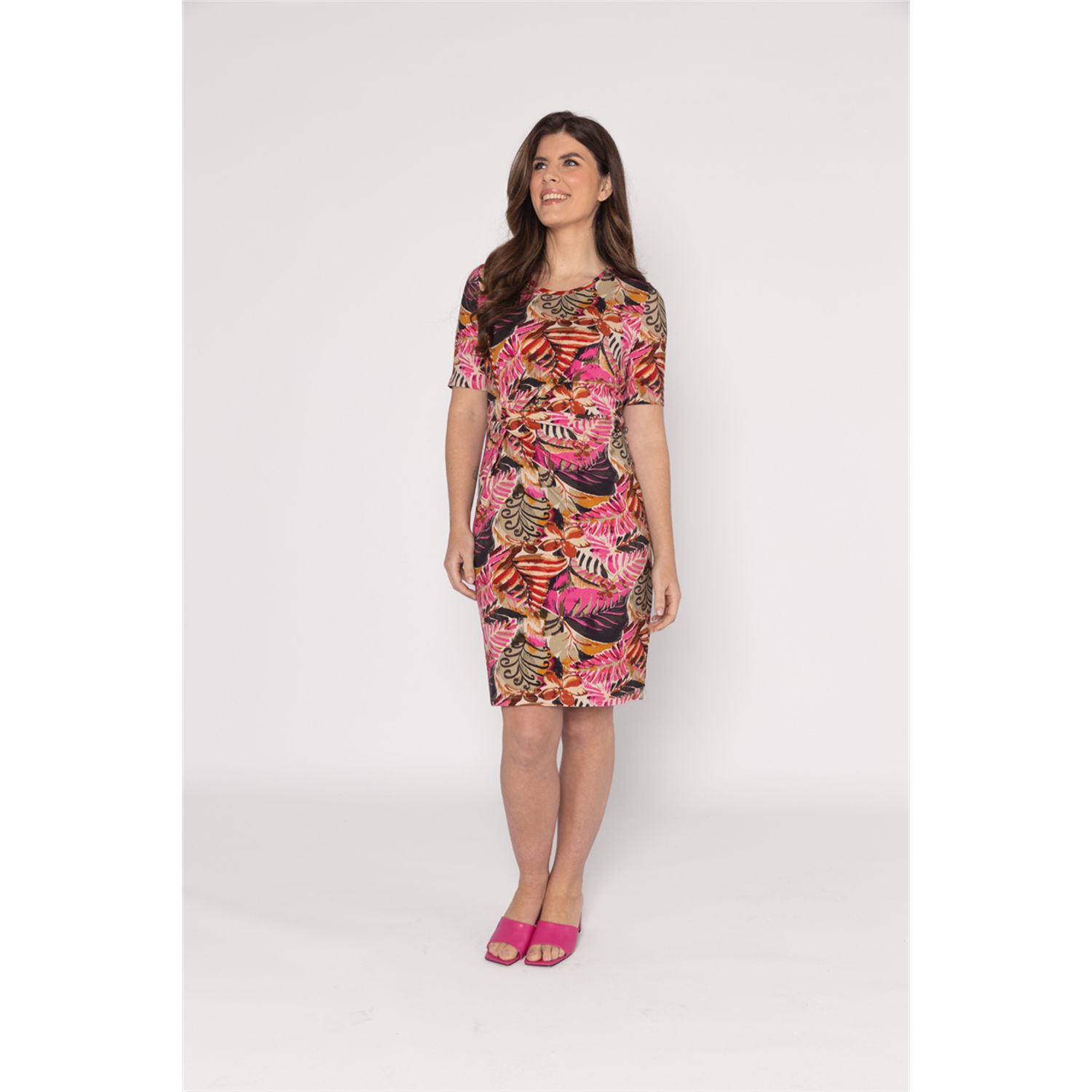 Dress round neck, with short sleeve and beautiful draping on the front. Available in multiple print. [611123-R1970]