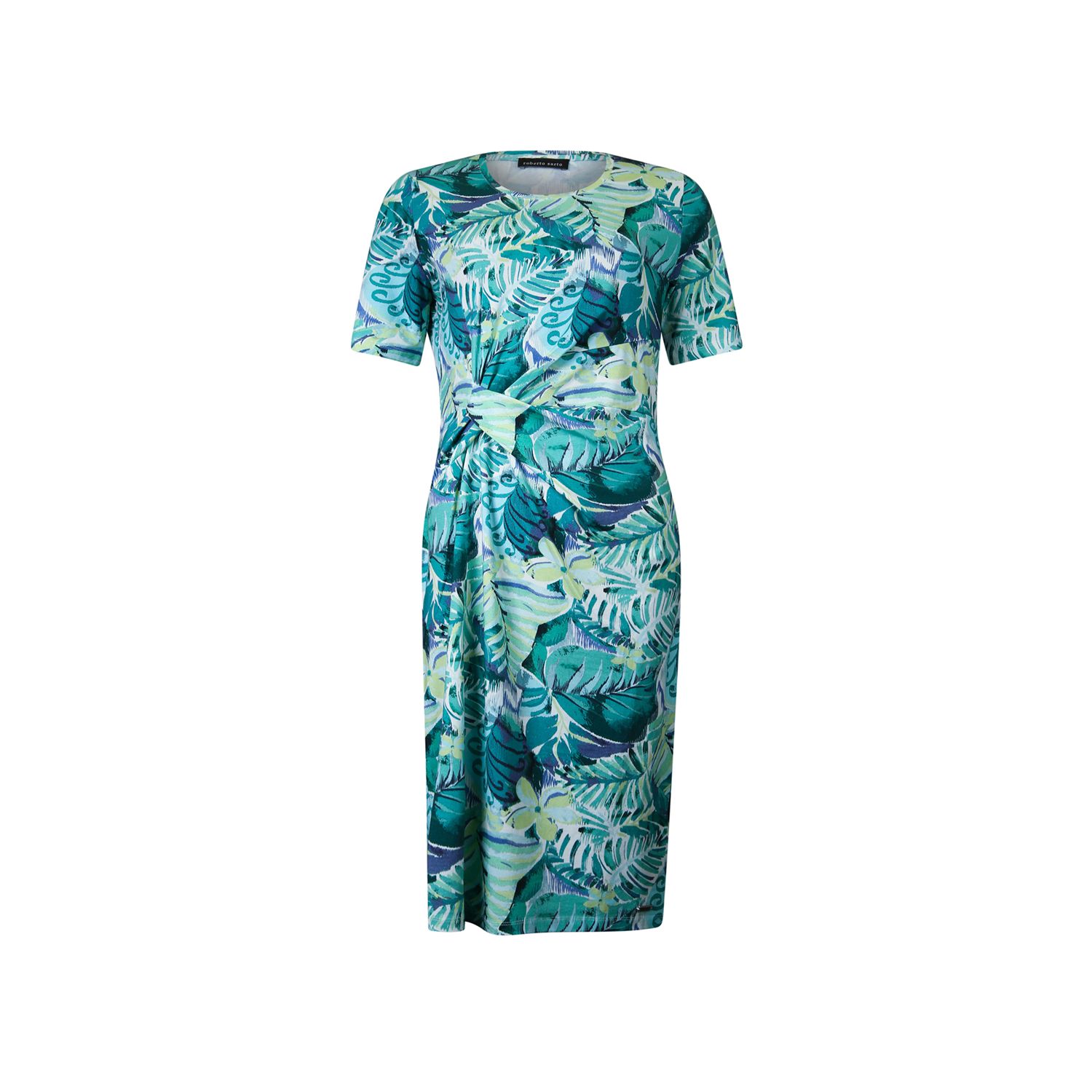Dress round neck, with short sleeve and beautiful draping on the front. Available in multiple print. [611123-R1971]