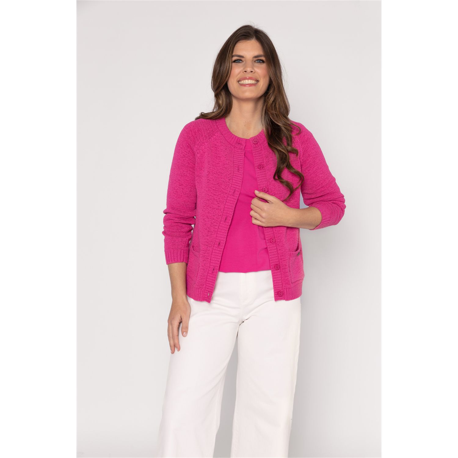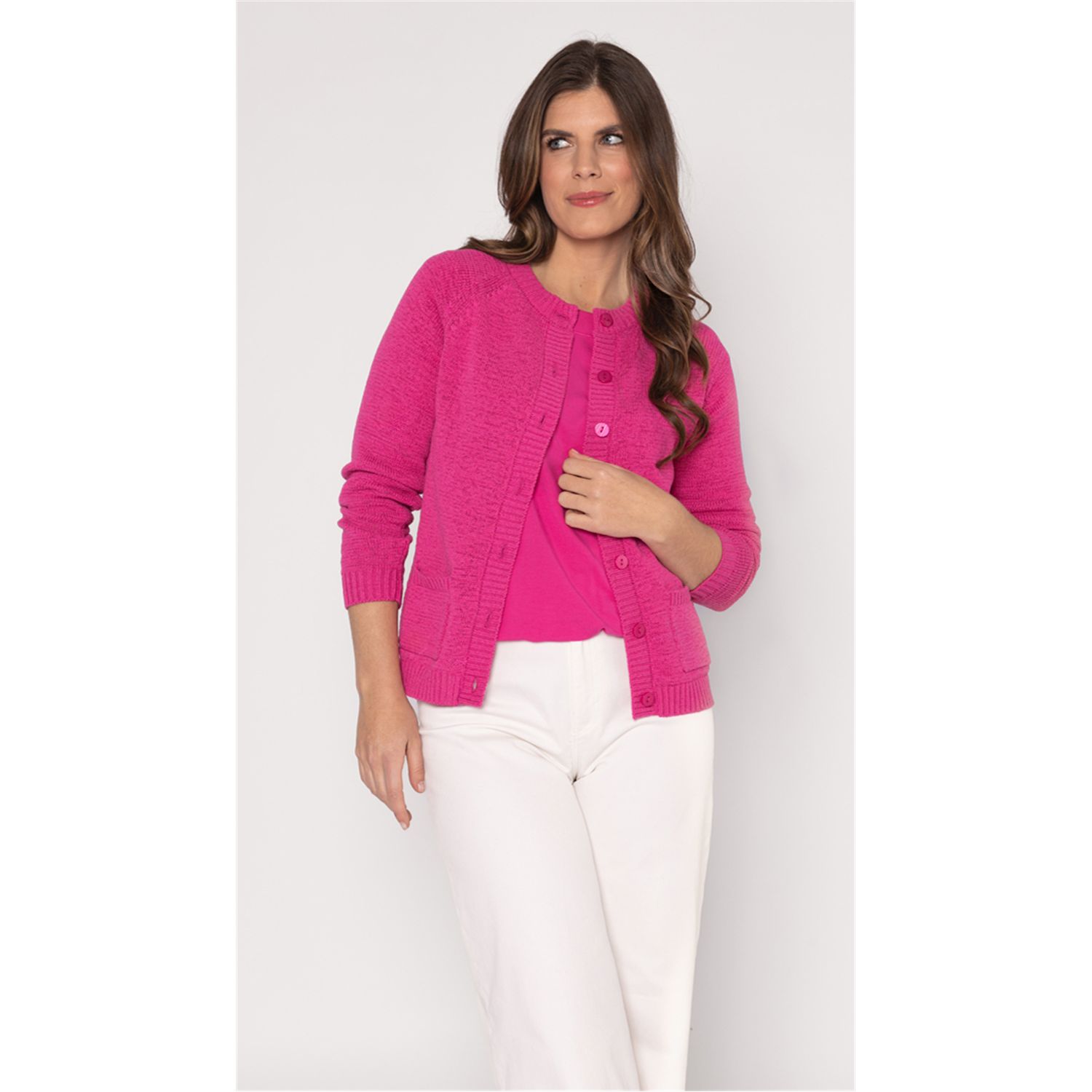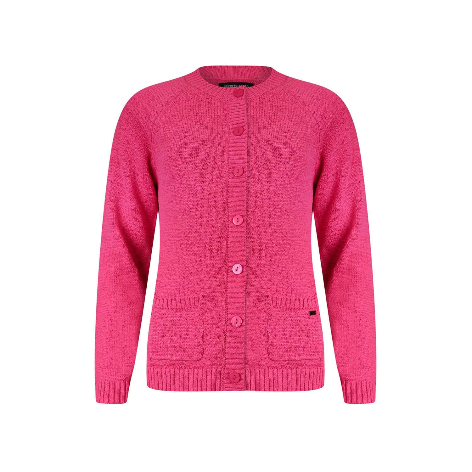 Long sleeve cardigan with pockets in beautiful banded cotton blend yarn. Available in several colors and 2 striped color combinations.
