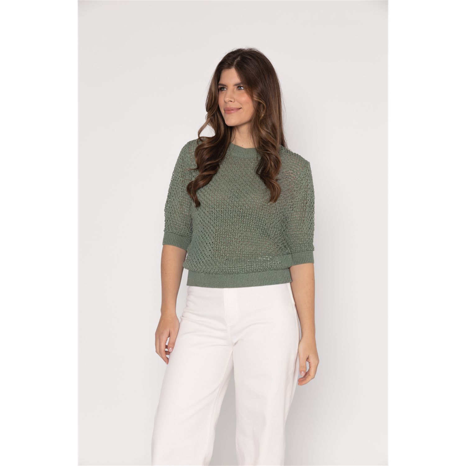 Round neck sweater, short sleeve in a beautiful cotton blend, available in multiple colors.