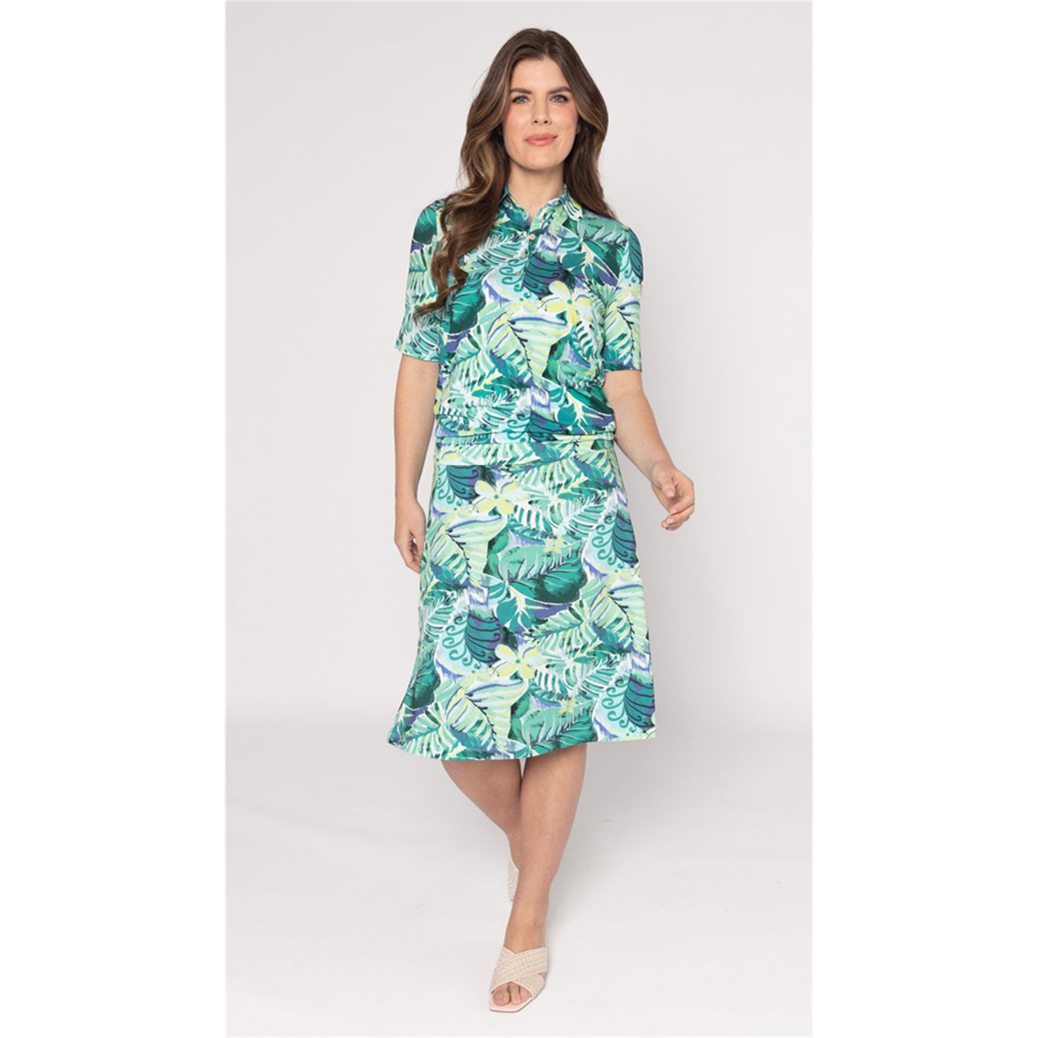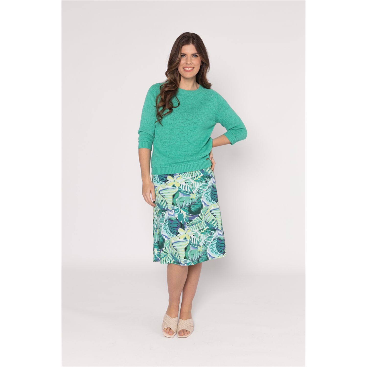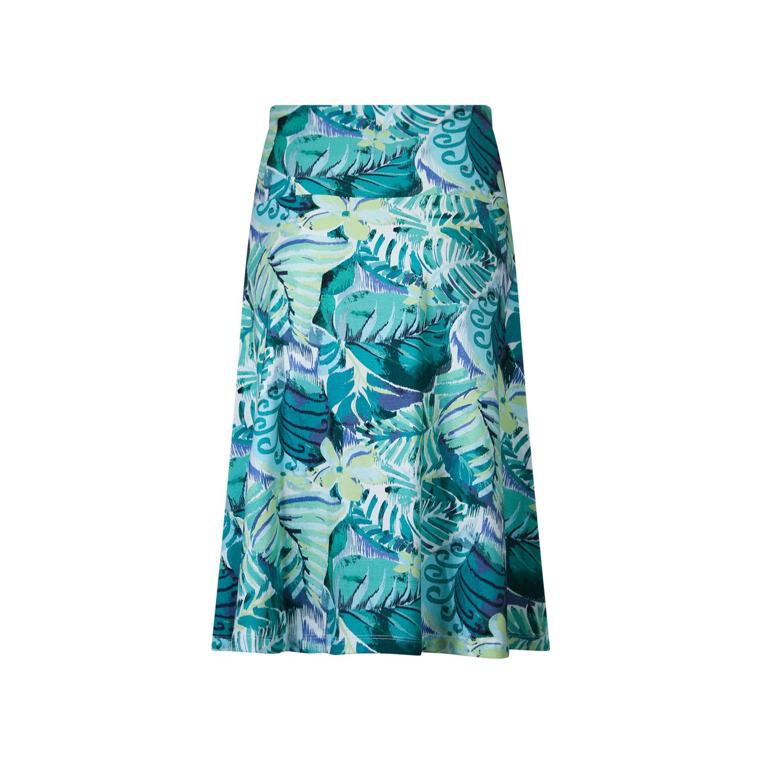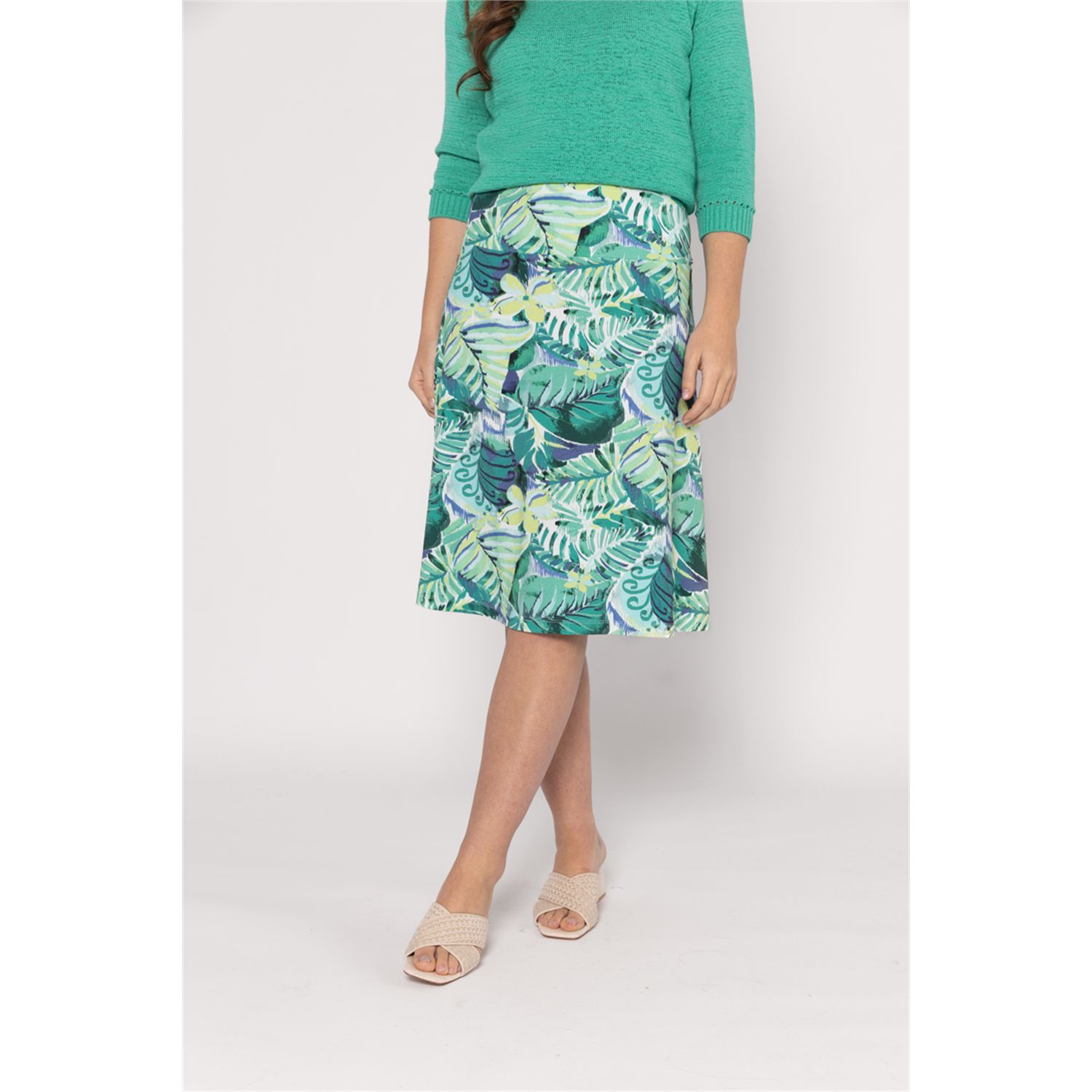 Flared skirt with wide nicely fitted band available in multiple prints. [611146-R1971]
