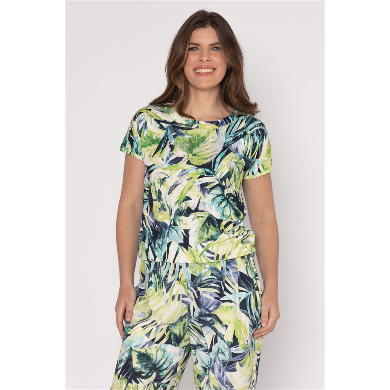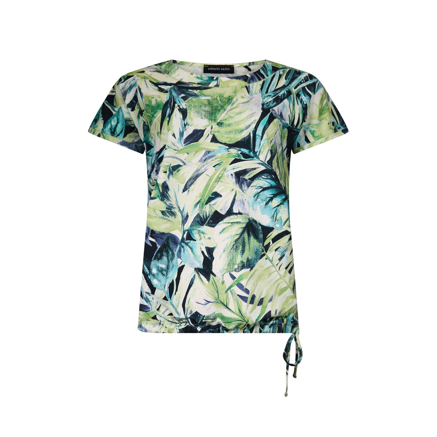 Blouson with boat neck and attached sleeve with jersey drawstring that fits nicely at the hip. Available in different prints.