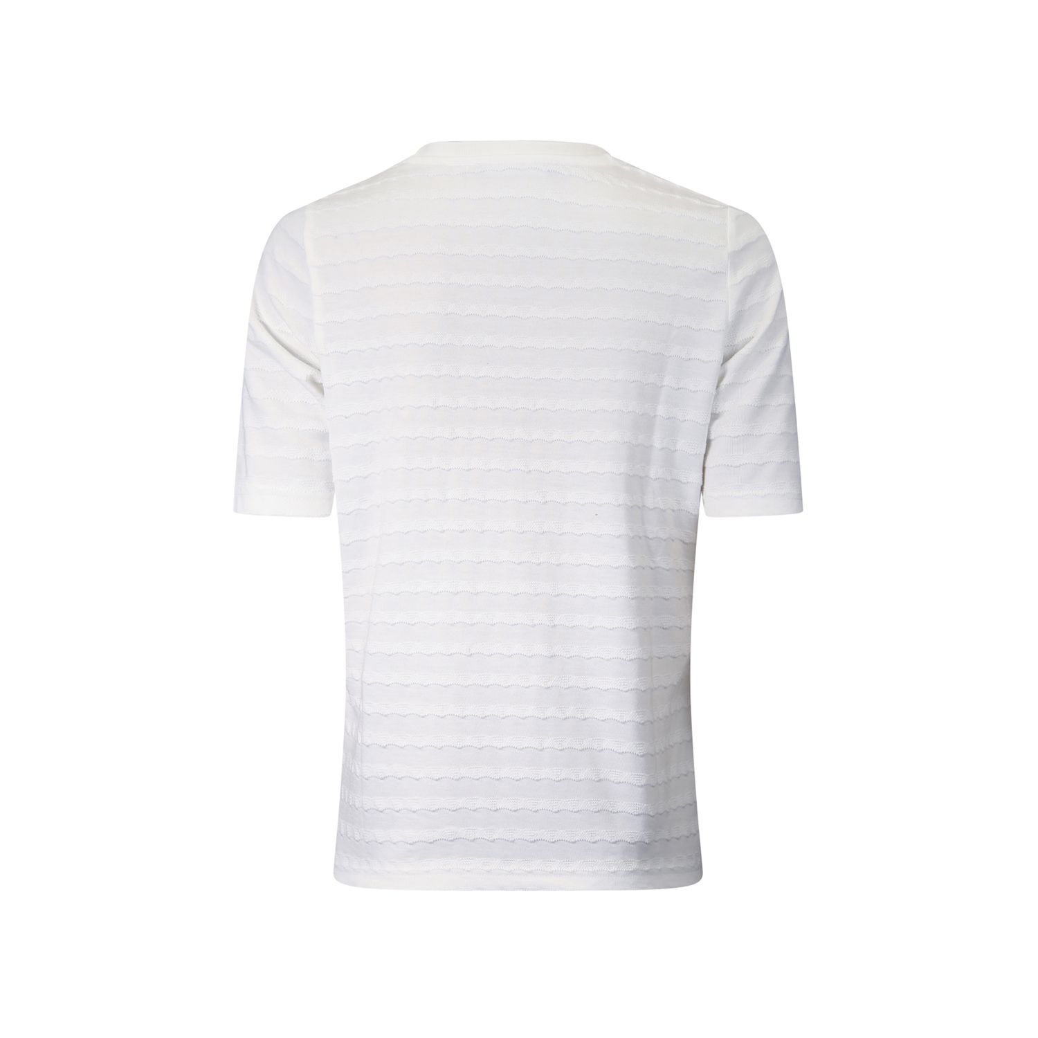 Slightly fitted T-shirt in viscose elastane in fancy jersey with short sleeve to just above the elbow, with fancy O-neck. Available in various colors.