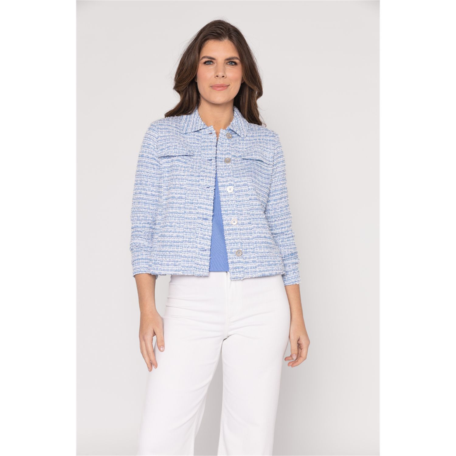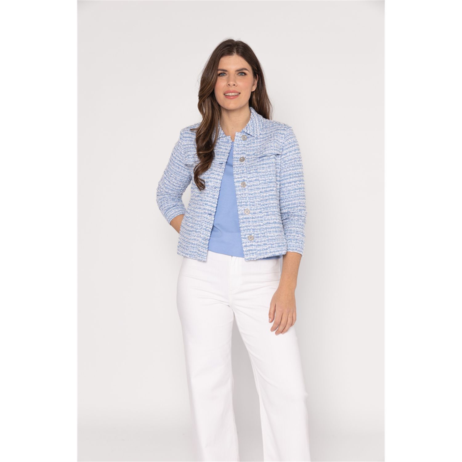 Kleuromschrijving: Sky-white bouclé melange