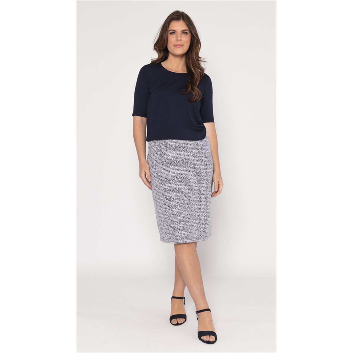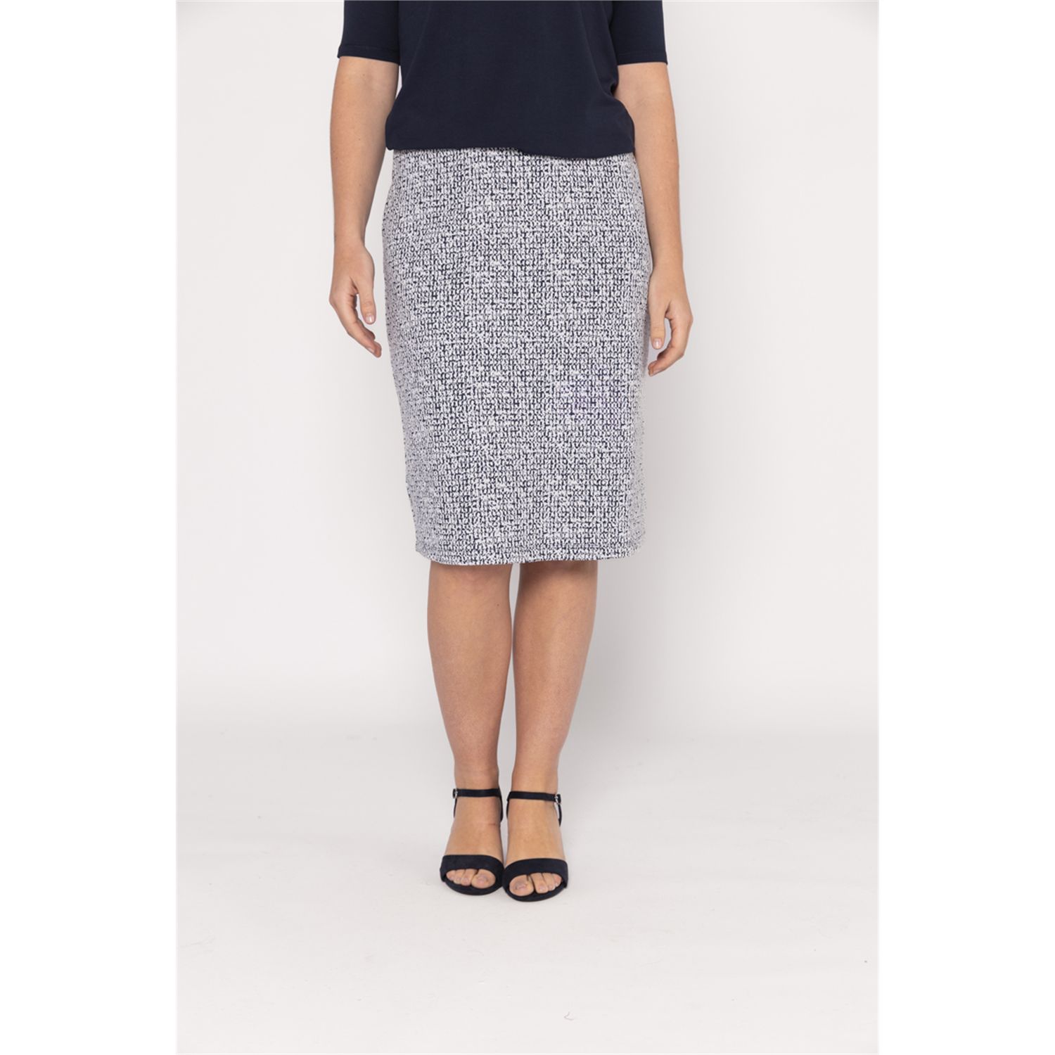 Recht rokje, gevoerd. Gemaakt in een iets dikkere jersey jacquard stof en verkrijgbaar in uni kleur.