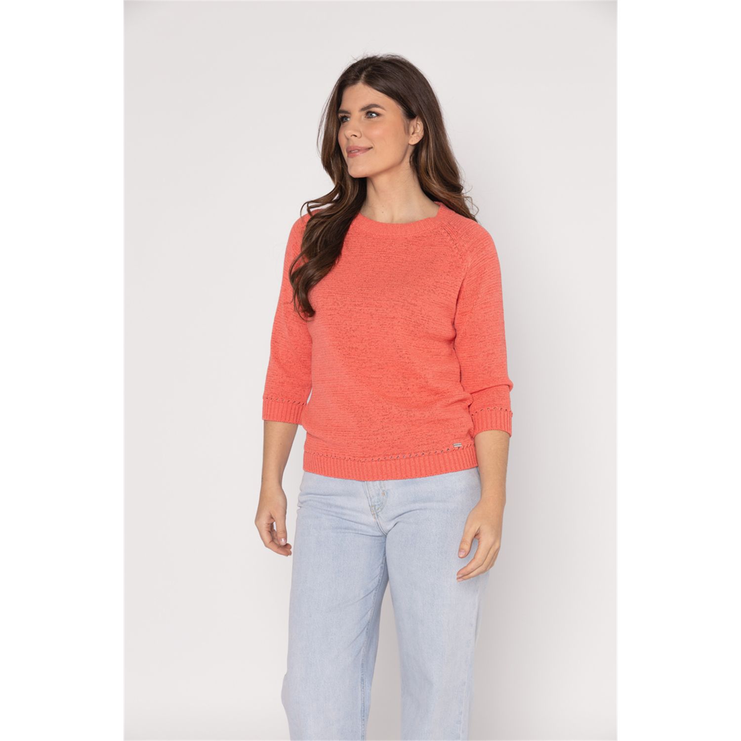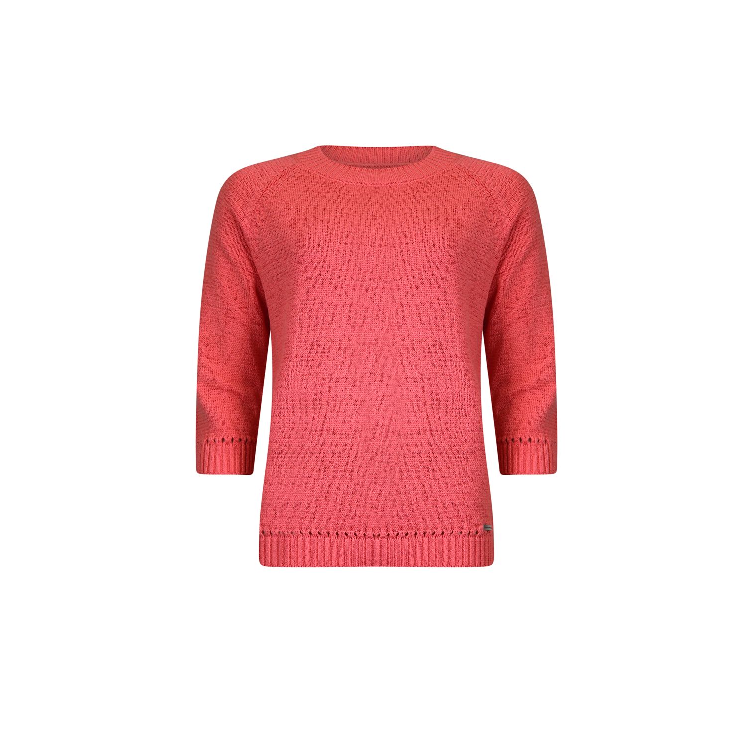 Pullover met driekwart mouwen in mooi bandjesgaren in katoenmix. Verkrijgbaar in diverse kleuren en 2 gestreepte kleur combinaties.