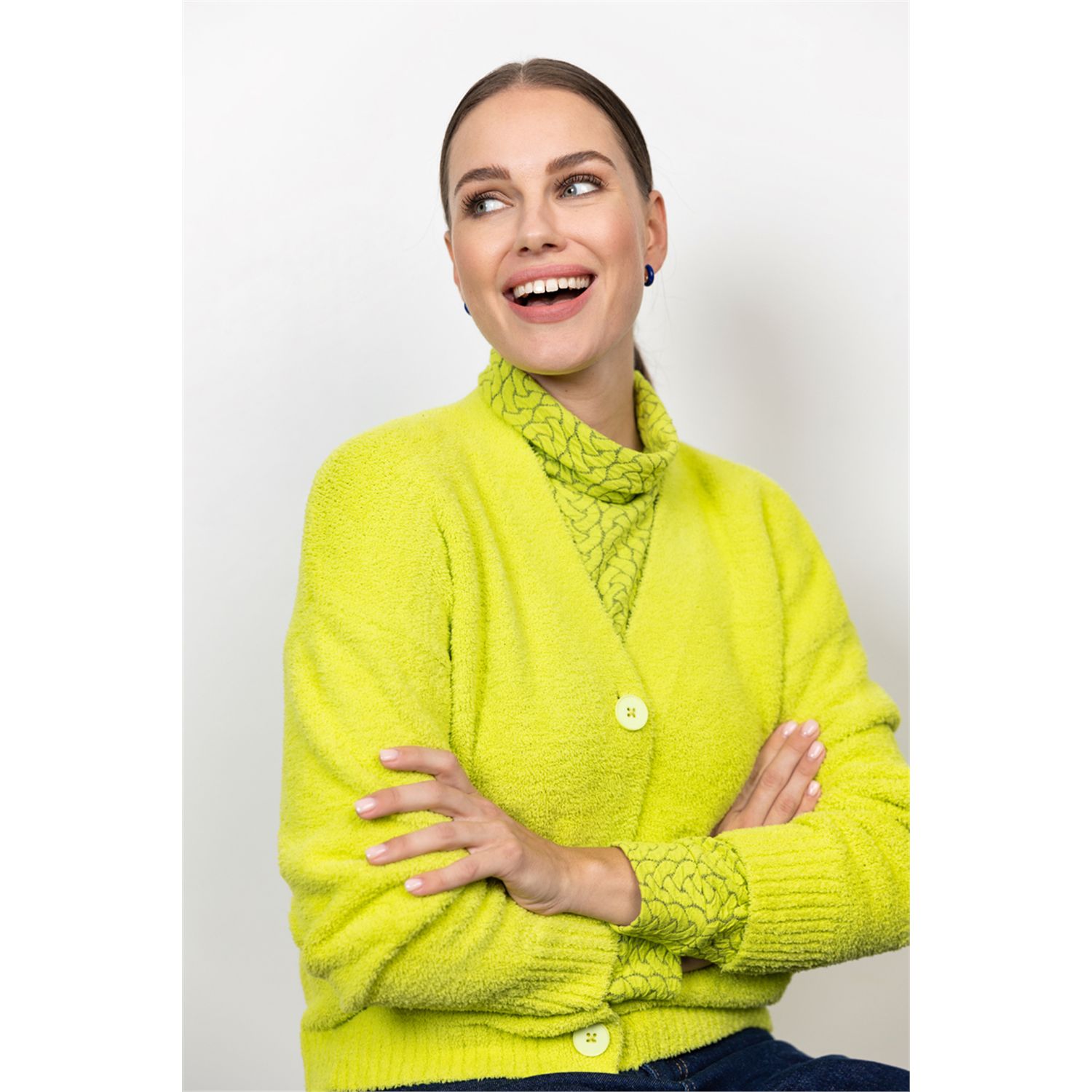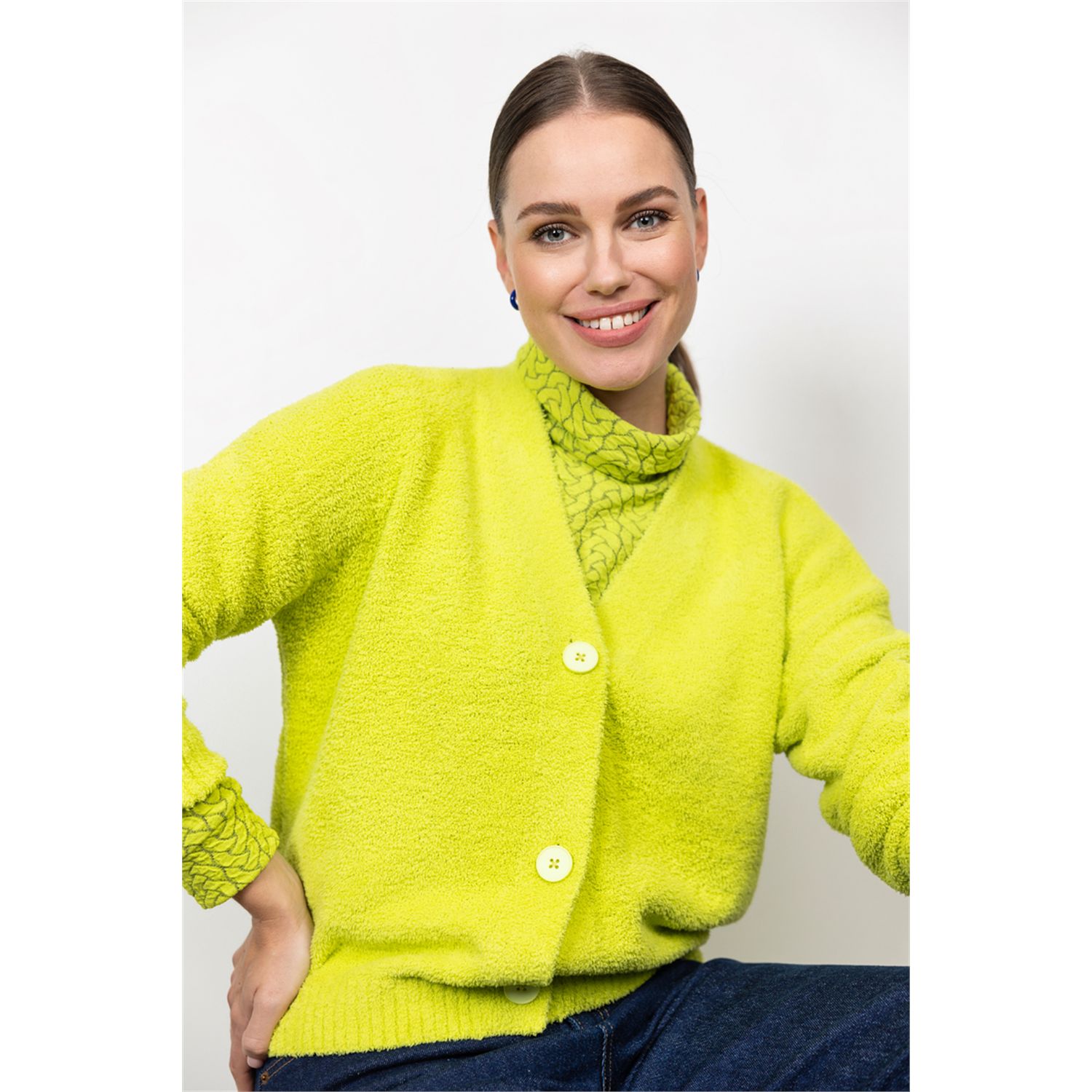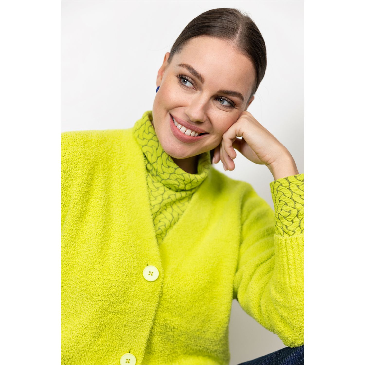 V-hals vest in comfortabele, zachte harige structuur voor een moderne sportieve look. Het vest sluit mooi aan bij de hals en sluit met drie knopen.