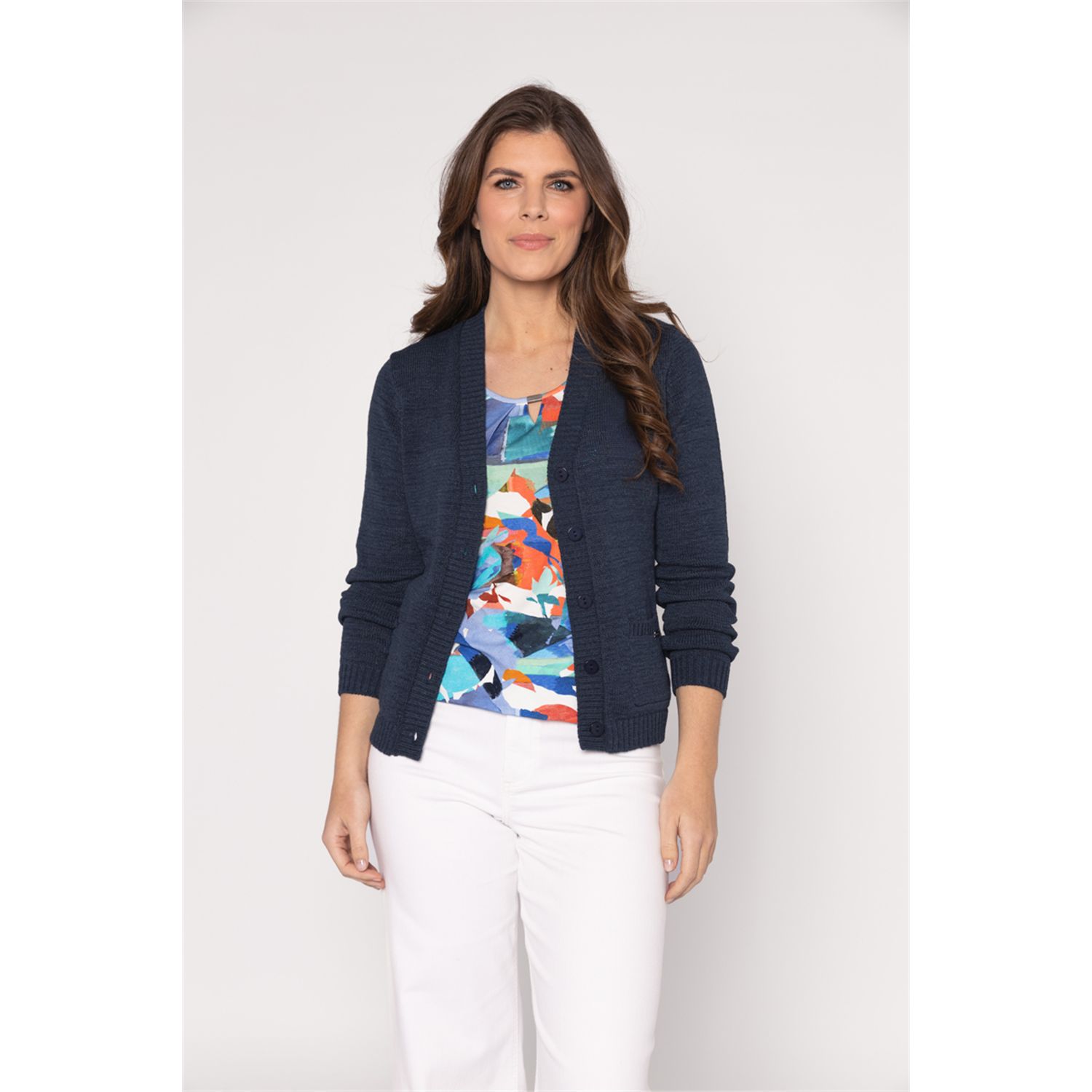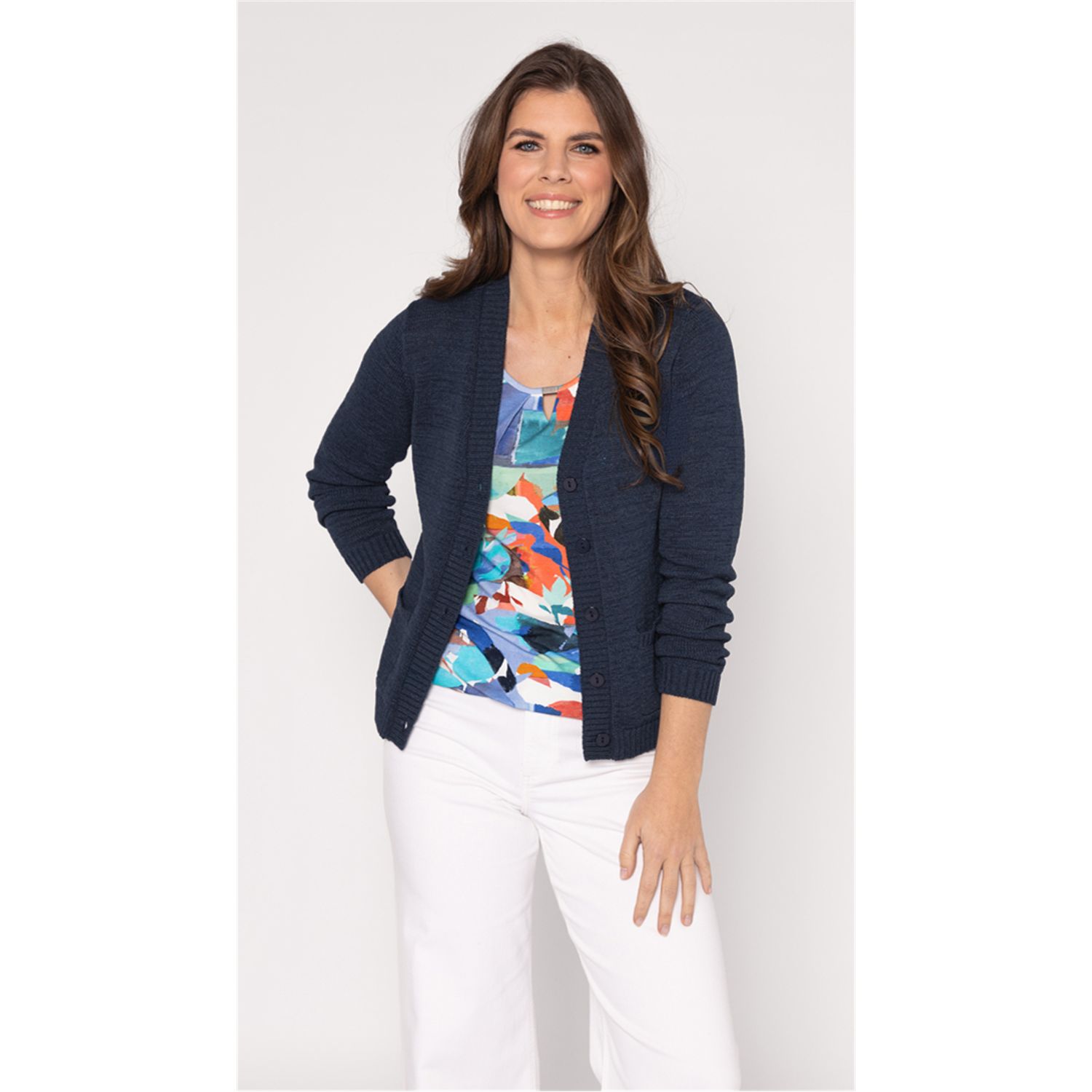 V-hals vest met knoopsluiting en 2 zakjes aan de voorzijde. Echt een voorjaarsvest omdat het koel draagt door het gebruik van een katoenmix bandjesgaren. Verkrijgbaar in meerdere kleuren.