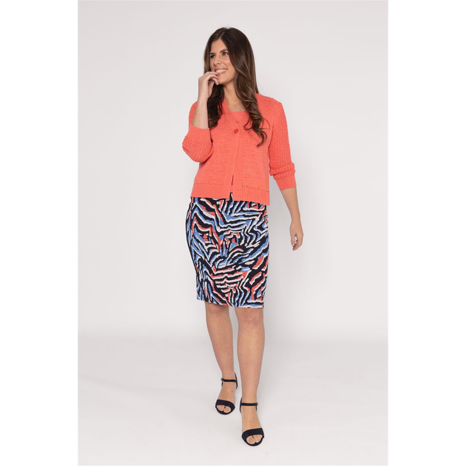 Kort bestseller vestje in bandjesgaren met een driekwart mouw in fancy steek. Sluit met een knoop. Verkrijgbaar in meerdere actuele kleuren.