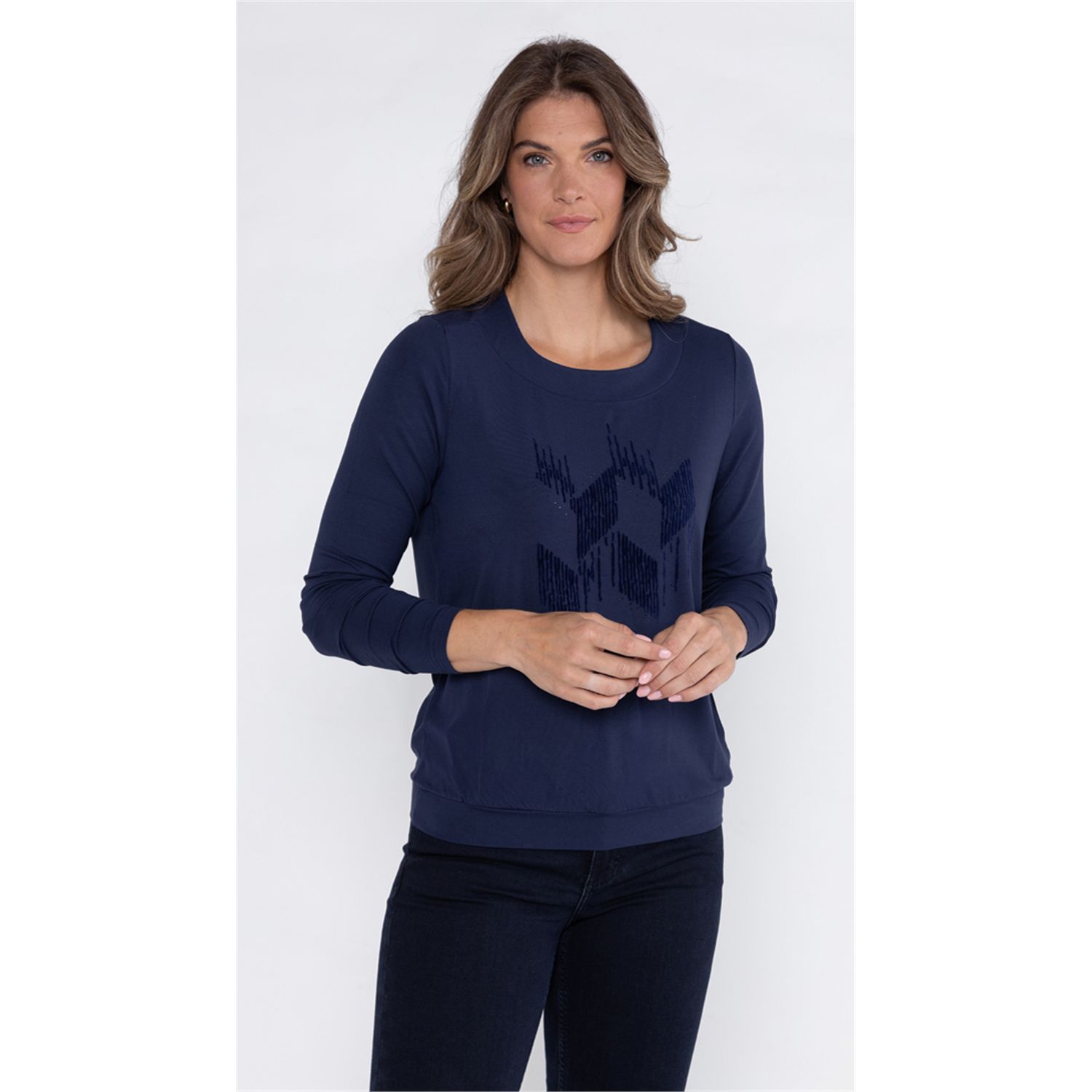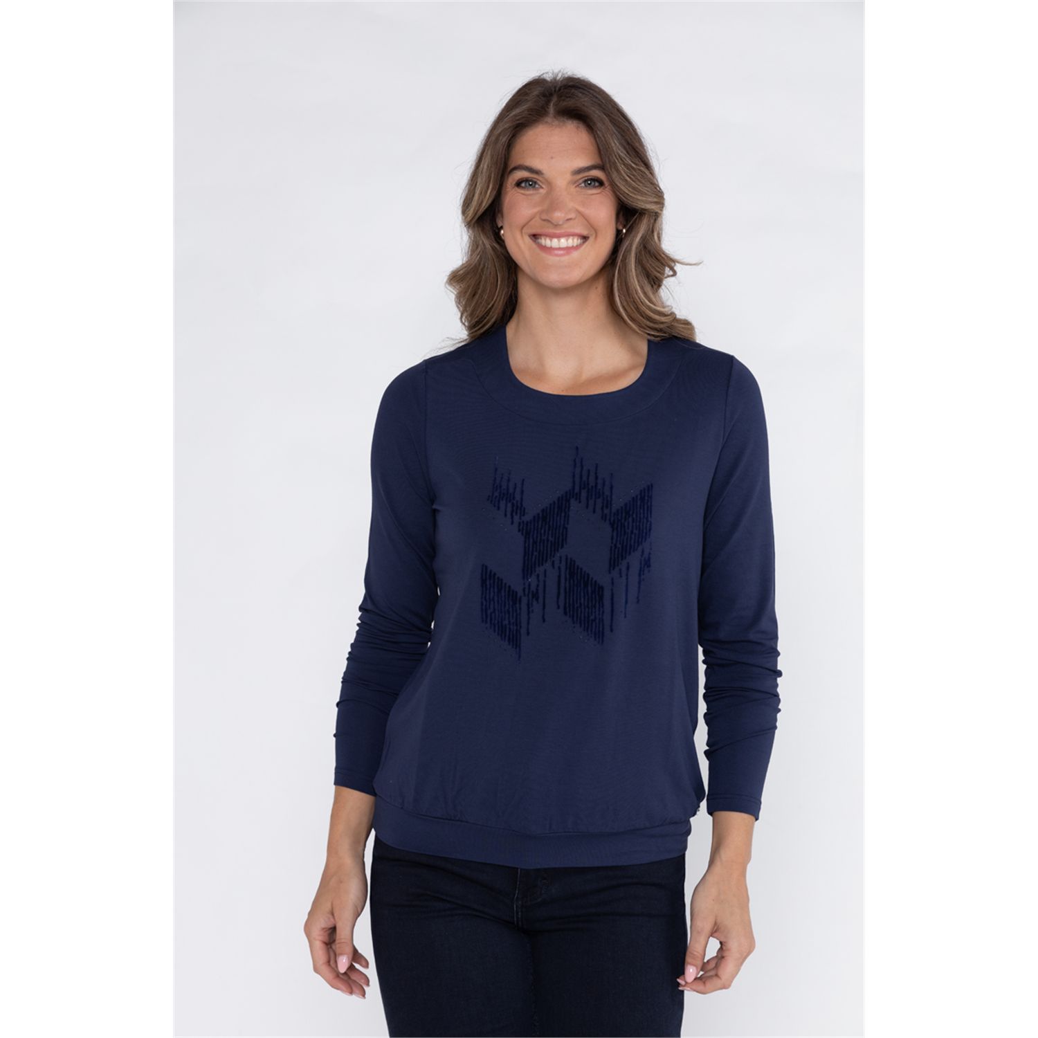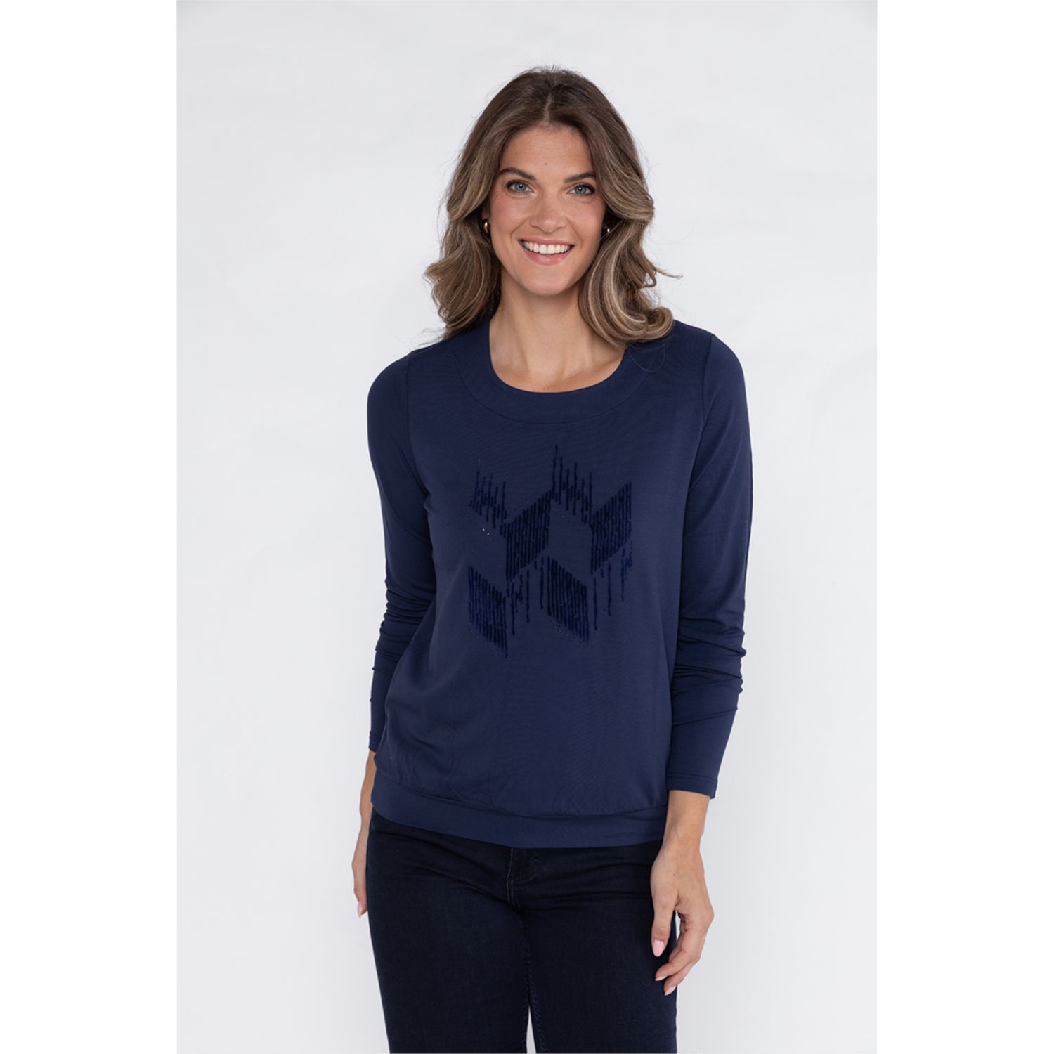Blouson uni t-shirt met artwork en lange mouw heeft een ronde hals en lange mouw is makkelijk te combineren met vesten en jasjes. Gemaakt van een aangename viscose-elasthan jersey.