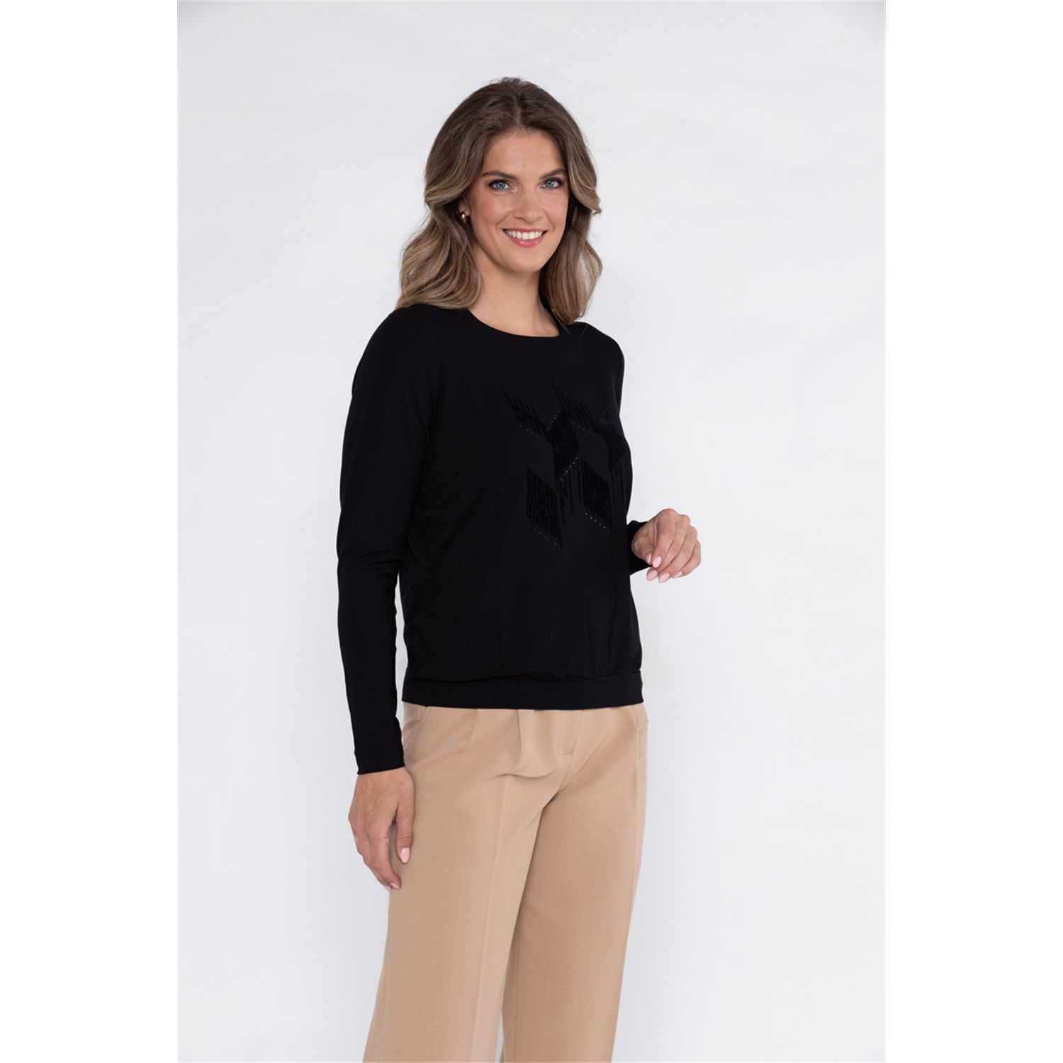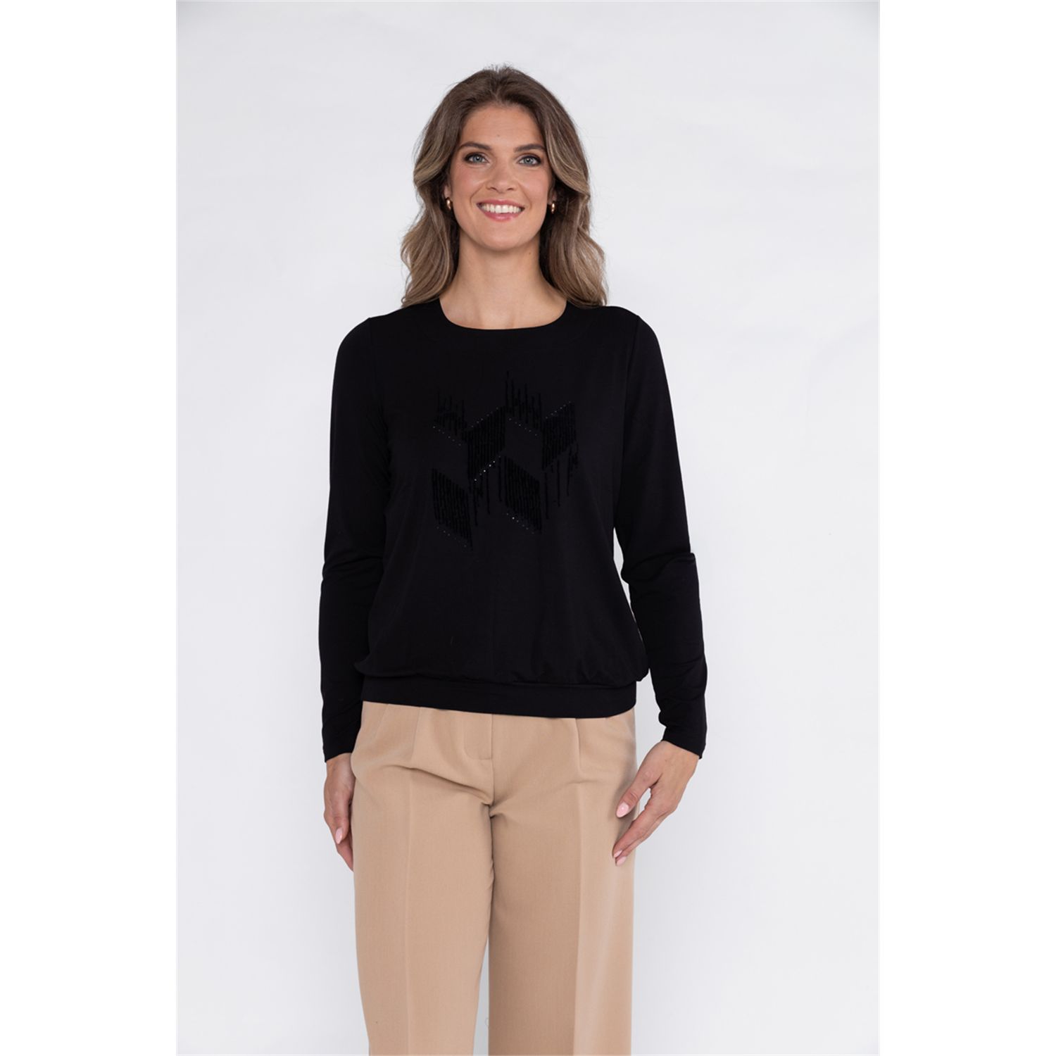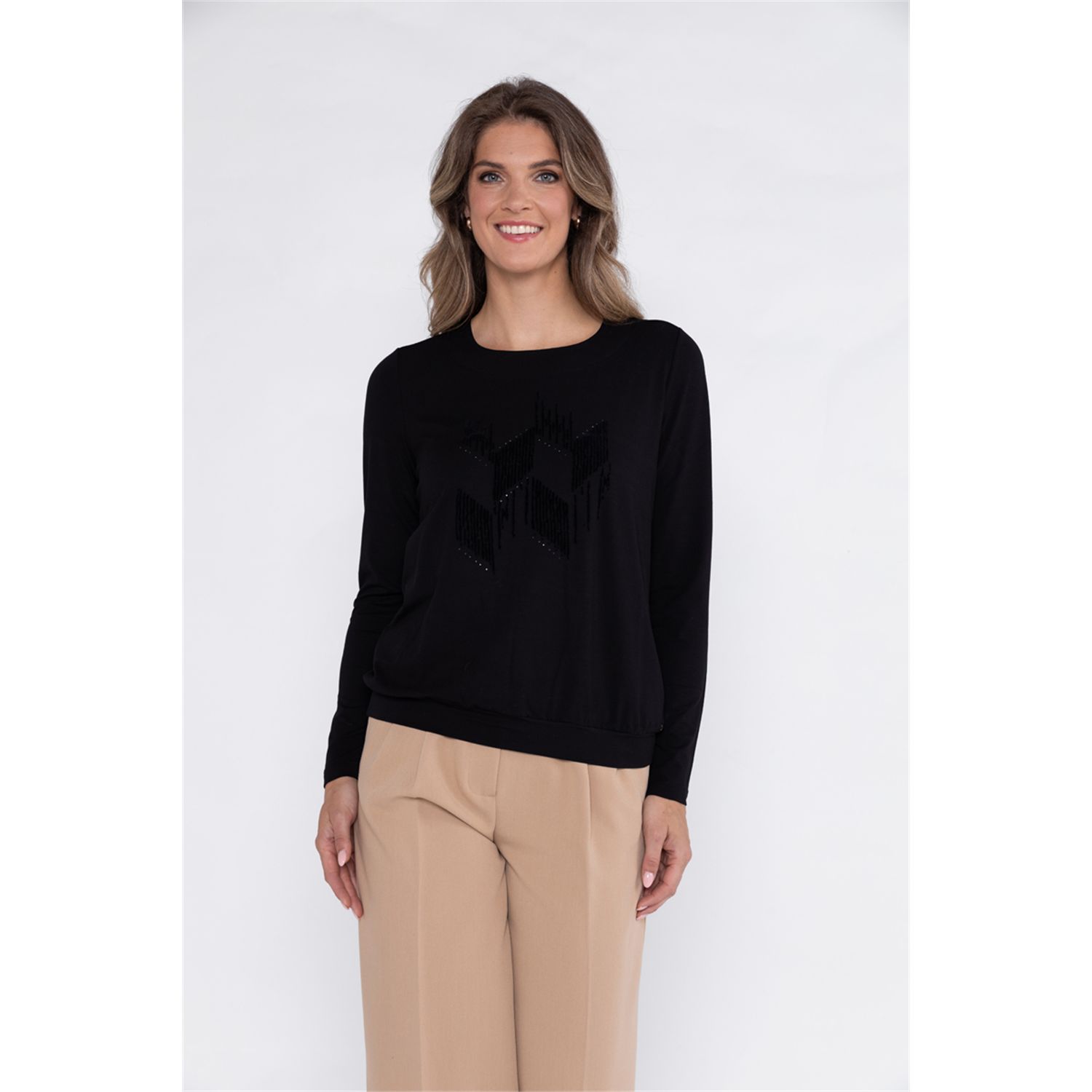 Blouson uni t-shirt met artwork en lange mouw heeft een ronde hals en lange mouw is makkelijk te combineren met vesten en jasjes. Gemaakt van een aangename viscose-elasthan jersey.