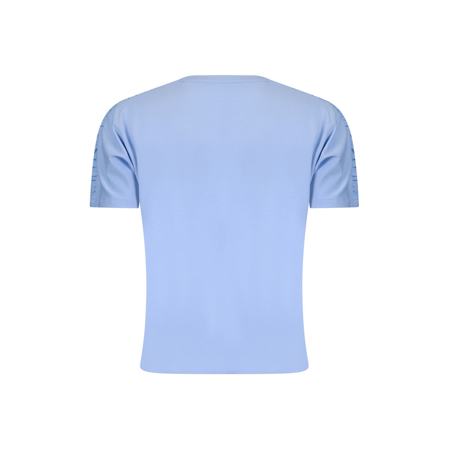 Blouson ronde hals met aangeknipte mouwen voorzien van een gesmokt detail op schouders. De elastische zoom zorgt ervoor dat het T-shirt mooi aansluit op de heup.