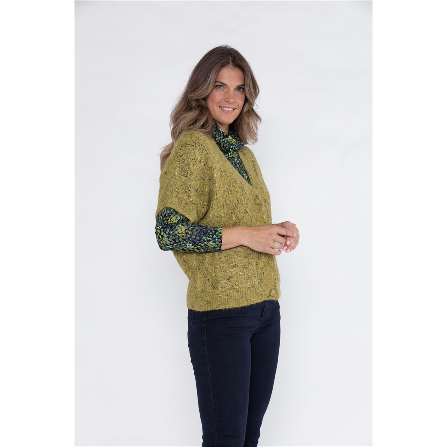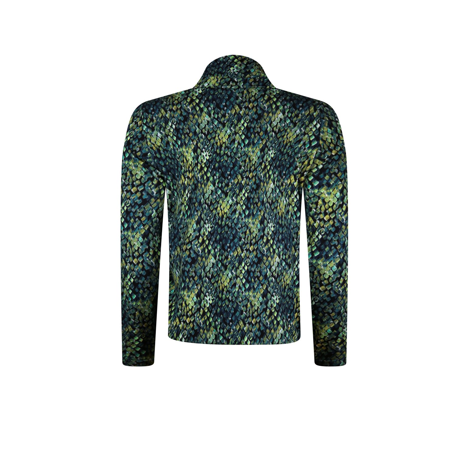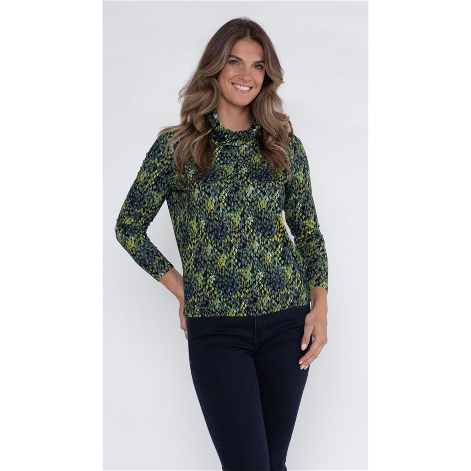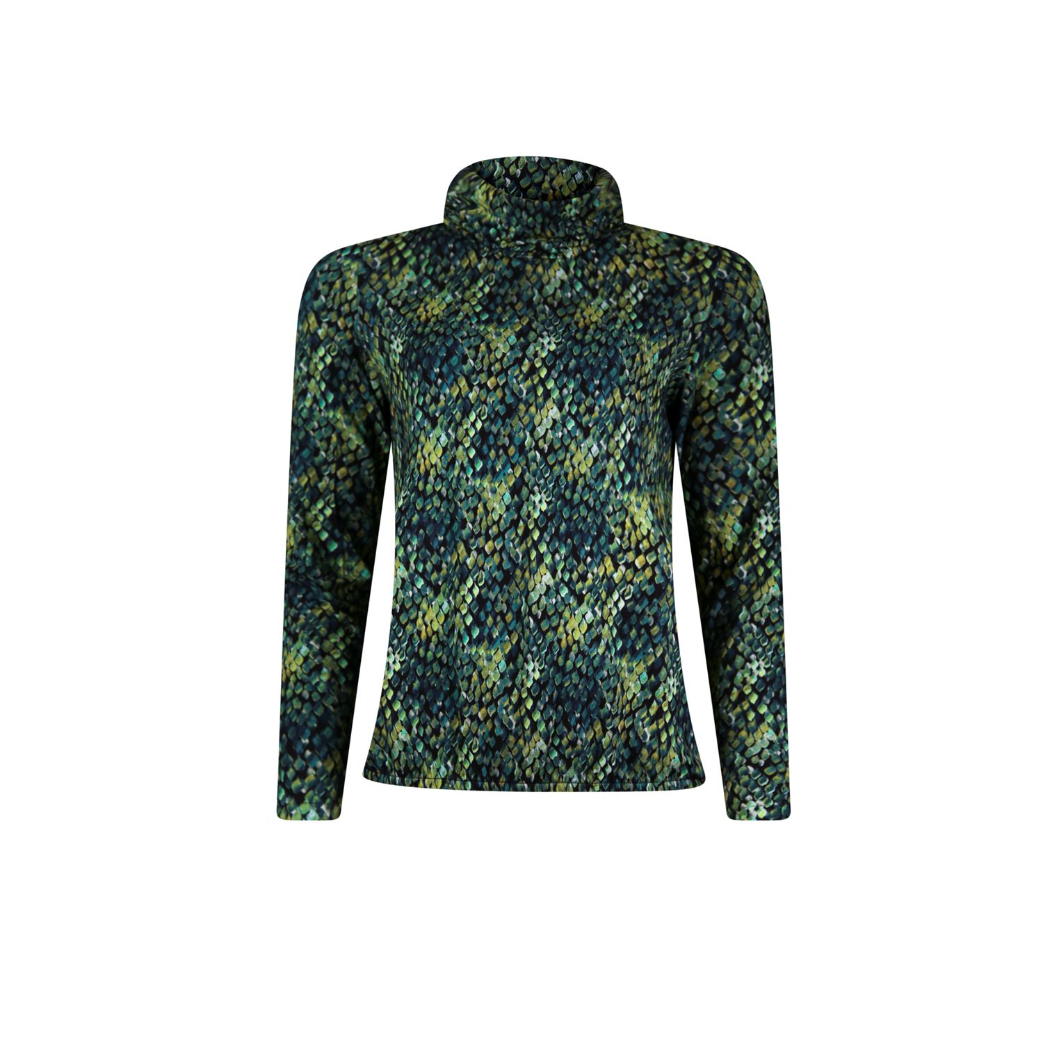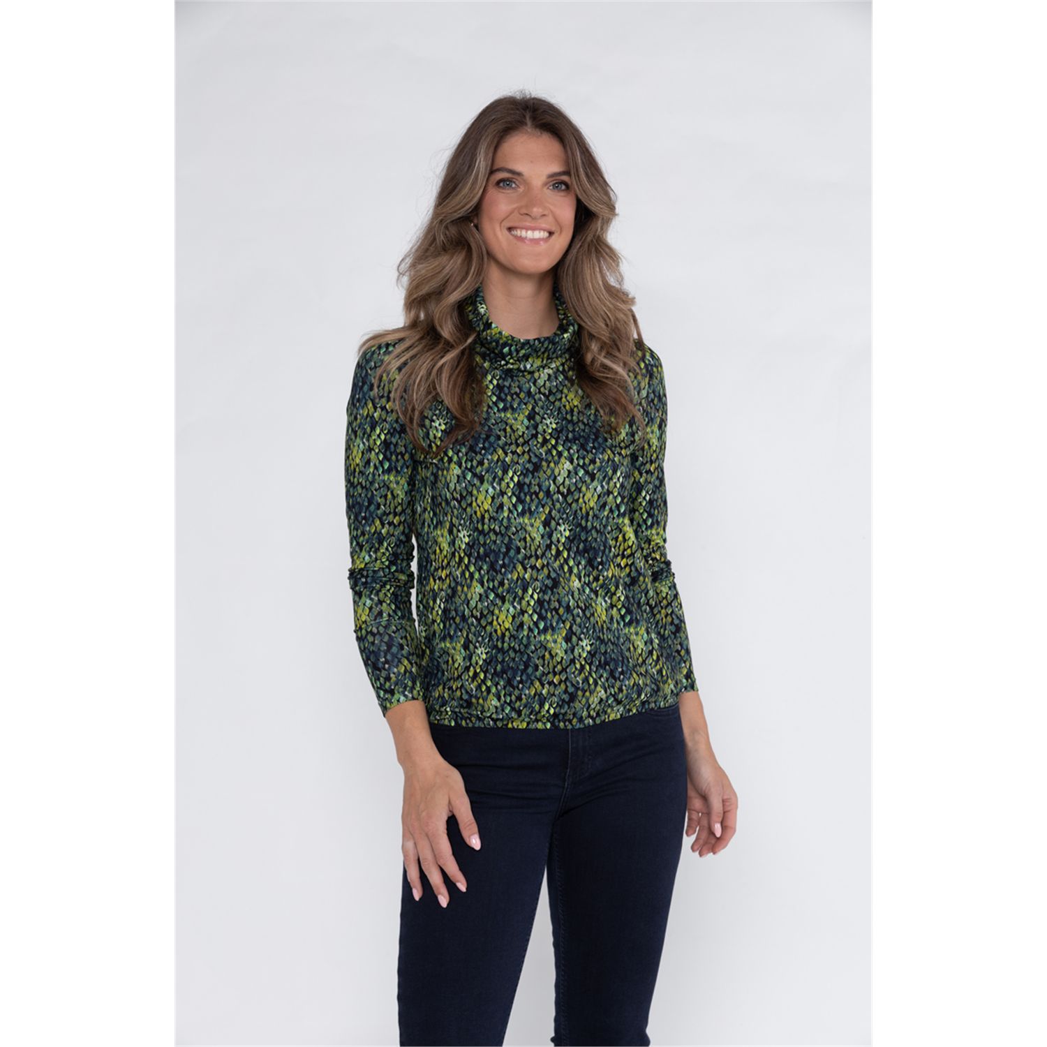 T-shirt rollcollar in soepele geprinte viscose-elasthan single jersey, met lange mouw. In meerder prints verkrijgbaar.